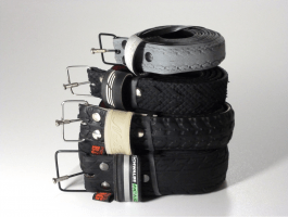 Bags and accessories out of different used materials like billboards, tires, car seats, etc.